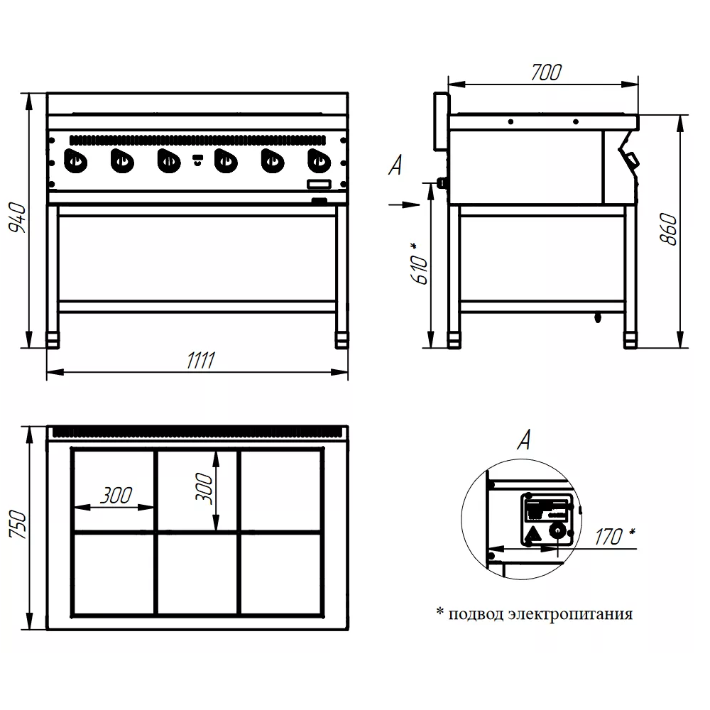 Поддон для сбора жидкости облегчает уборку, а прочный корпус из нержавеющей стали устойчив к нагрузкам и легко очищается. Регулируемые ножки помогают точно установить плиту на любом типе пола.