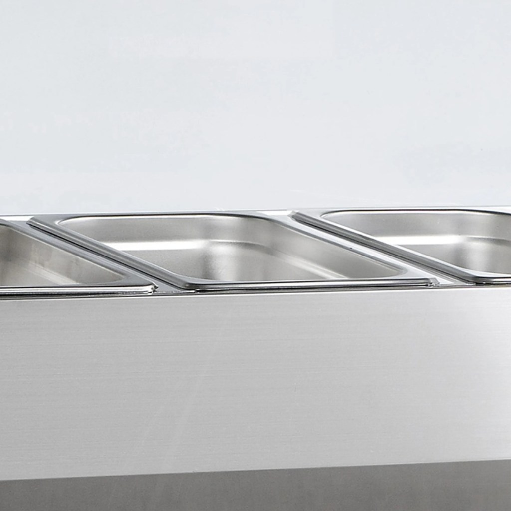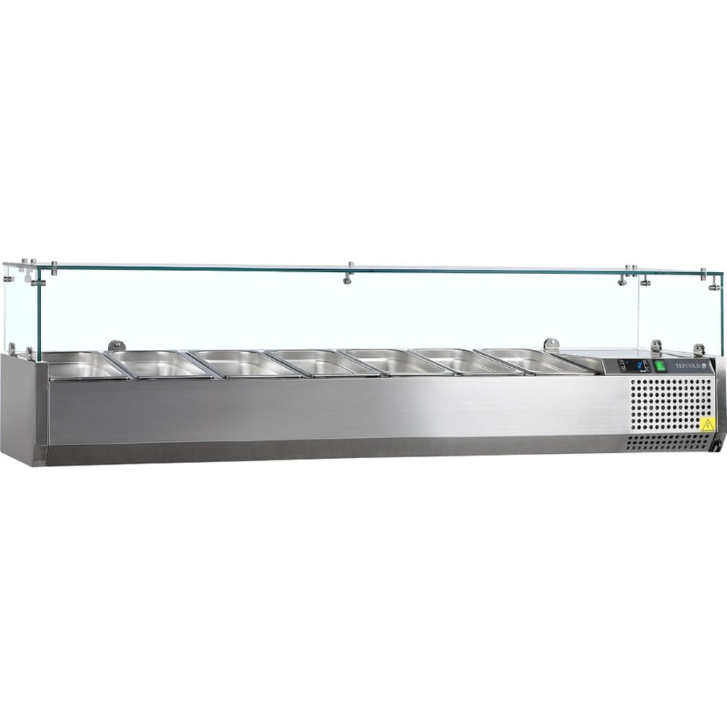 Каталог оборудования Холодильное оборудованиеВитрины для ингредиентовВитрина холодильная для ингредиентов TEFCOLD VK33-150 Витрина холодильная для ингредиентов TEFCOLD VK33-150 Код товара: 010-382 Поделиться: WhatsAppTelegram СравнитьДобавить в КПВ избранное 0 93 276 ₽ В корзину 0 шт В наличииСамовывоз сегодня бесплатно Взять в кредит Купить в лизинг Получить консультацию в WhatsApp Описание Характеристики Отзывы 0 Инструкции 2 Витрина холодильная для ингредиентов TEFCOLD VK33-150 предназначена для кратковременного хранения и демонстрации готовых салатов, мясных и рыбных закусок, а также ингредиентов на предприятиях общественного питания и торговли. Корпус и внутренняя обшивка выполнены из нержавеющей стали, обеспечивая долговечность и легкость очистки. Гастроемкости в комплект не входят. Особенности: Статическое охлаждение — равномерное поддержание температуры, подходит для деликатных продуктов. Механическое размораживание — надежное удаление наледи без вмешательства пользователя. Хладагент R600a — экологичный и энергоэффективный. Электронный термостат и градусник — точная настройка и контроль температуры. Гнутый стеклянный колпак — обзор продукции и защита от внешних воздействий. Регулируемые ножки — удобная установка и устойчивость на неровной поверхности. Климатический класс 4 — работа при температуре окружающей среды до +32°C. Вместимость — 7×GN 1/4 глубиной 150 мм, удобно для салатов и закусок. Перегородки — 6 длинных и 1 короткая для удобного разделения продуктов. Уровень шума: 47 дБ — почти бесшумная работа. Хладагент: 0,04 кг — эффективное охлаждение при минимальном расходе. Внутренние размеры: 1145×245×155 мм — компактное размещение емкостей. TEFCOLD VK33-150 — надежная и удобная в эксплуатации витрина для демонстрации и кратковременного хранения продуктов с безопасным поддержанием температуры.Изображение товара, представленного на фото, может отличаться от его фактического вида. Показать все Габаритные размеры1500×335×435 ммДиапазон рабочей температурыот +2 до +10 °CДлина1500 ммГлубина335 ммВысота435 ммТип крышкиСтеклянная Гастроемкостей7 штТип гастроемкостейGN 1/4 Мощность0,112 ВтНапряжение220 ВТип охлажденияСтатическое Уровень шума47 дБКлиматический класс4 ХладагентR600a Вес нетто45 кгВес брутто50 кгТип оттайкиРучная Габариты в упаковке1580×380×310 ммБрендTefcold Оставить отзыв Еще никто не оставил отзыв на этот товар Инструкция на TEFCOLD VK33-150.pdfСхема TEFCOLD VK33-150.jpg Похожие товары Перейти в каталог В наличии 51 291 ₽ Витрина холодильная для ингредиентов HICOLD VRTO 1485 1/3 В наличии 54 963 ₽ Витрина холодильная для ингредиентов HICOLD VRTU 1485 1/3 С этим товаром покупают В наличии 111 237 ₽ Стол морозильный Cooleq GN2100BT Под заказ 132 962 ₽ Льдогенератор HURAKAN HKN-GB85 В наличии 111 644 ₽ Шкаф холодильный Polair СМ 107-G Ранее просмотрено В наличии 100 103 ₽ Стол холодильный среднетемпературный Arkto СХС-3-60