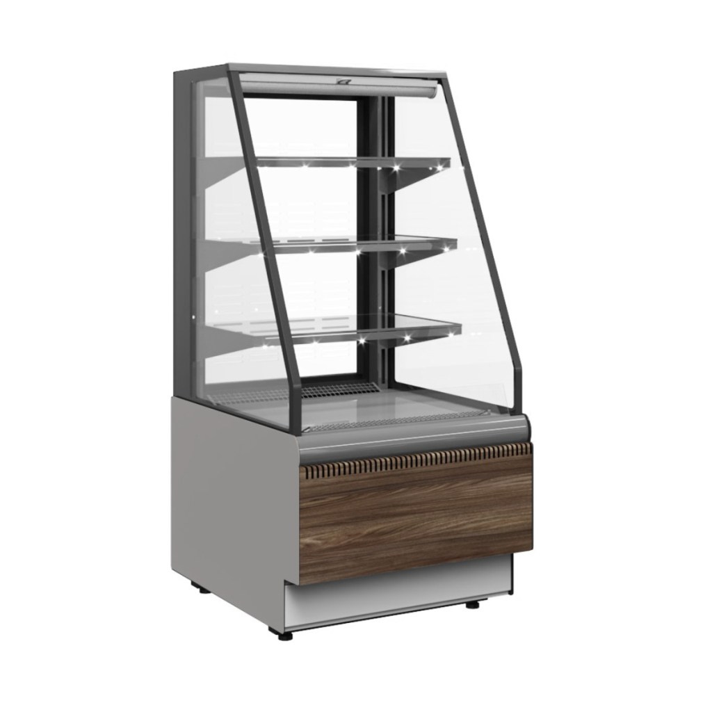 Витрина кондитерская Carboma KC70 VM 0,9-2 STANDARD Паттерн открытая (0108 Темный дуб) — это современная напольная витрина открытого типа, предназначенная для охлаждения, кратковременного хранения и привлекательной демонстрации десертов, кондитерских и хлебобулочных изделий. Модель оптимально подходит для использования в кафе, пекарнях, кондитерских, барах и других заведениях общественного питания и торговли.