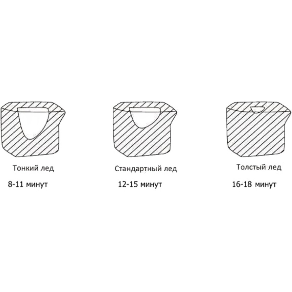 Время цикла: тонкий лед – 8–11 мин, стандартный – 2–15 мин, толстый – 16–18 мин