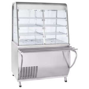 Удобный доступ к блюдам: для посетителей предусмотрена возможность поднятия фронтальных дверец, а персонал обслуживает витрину через раздвижные задние дверцы.