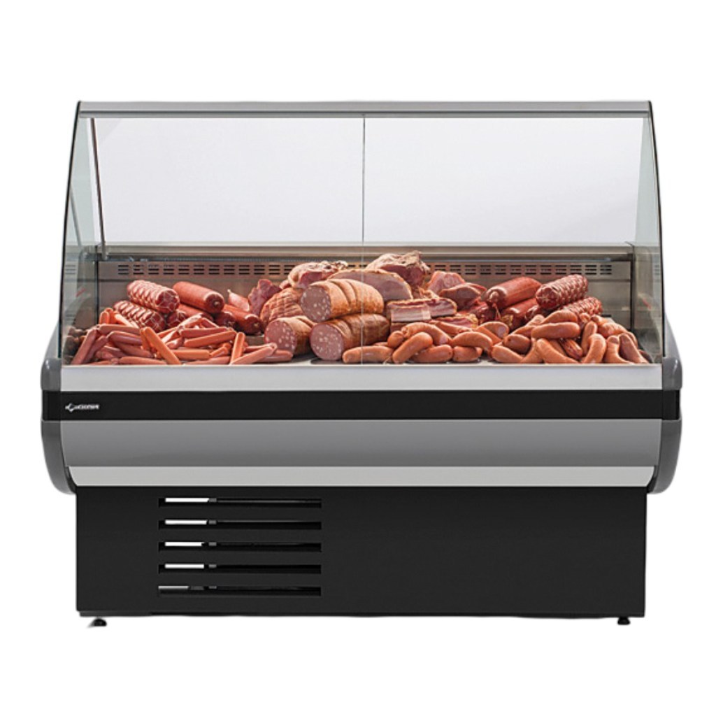 Конструкция и материалы: изогнутое фронтальное стекло для лучшей видимости продукции, экспозиционная и рабочая поверхности из нержавеющей стали, боковые панели из ударопрочного ABS-пластика, теплоизоляция из пенополиуретана, люминесцентная подсветка для яркой презентации продуктов.