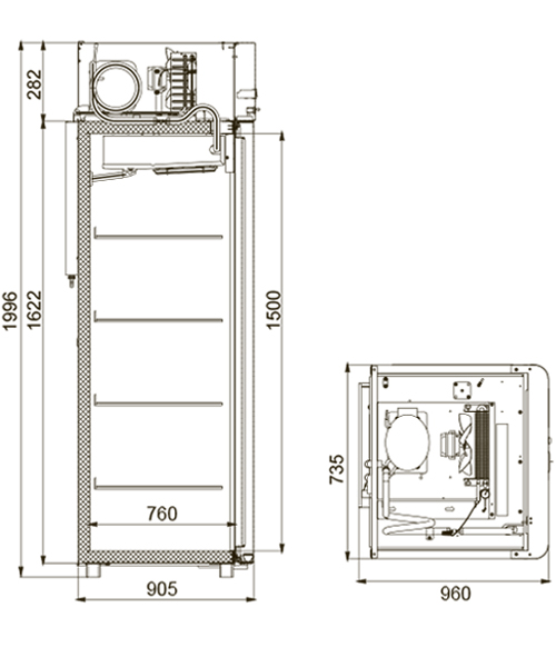 Каталог оборудования Холодильное оборудованиеШкафы холодильныеШкафы морозильные низкотемпературные до -18 °СШкаф морозильный Polair Polair CB107-Gm Alu Шкаф морозильный Polair Polair CB107-Gm Alu Код товара: 062-591 Поделиться: WhatsAppTelegram СравнитьДобавить в КПВ избранное 0 163 200 ₽ В корзину 0 шт Под заказСамовывоз сегодня бесплатно Взять в кредит Купить в лизинг Получить консультацию в WhatsApp Описание Характеристики Отзывы 0 Инструкции 4 Шкаф морозильный Polair Polair CB107-Gm Alu разработан для демонстрации и надежного хранения продуктов на предприятиях общественного питания и торговли. Цельнозаливной корпус выполнен из нержавеющей стали как снаружи, так и внутри (кроме задней стенки), что гарантирует высокую прочность и долговечность конструкции. Алюминиевые профили дверей и верхней панели подчеркивают современный и премиальный внешний вид шкафа. Оборудование рассчитано на работу при температуре окружающей среды до +40 °С и относительной влажности воздуха до 80%, что делает его надежным решением даже в сложных условиях эксплуатации. Основные особенности: Многофункциональная контрольная панель с жидкокристаллическим дисплеем Верхнее расположение агрегата, обеспечивающее удобный доступ к внутреннему объему Поддержка дистанционного мониторинга и записи данных в журнал контроллера (при использовании сетевой карты), а также передача данных через Bluetooth Клапан Шредера и компенсационный клапан с ПЭНом обогрева ПЭН обогрева трубки слива конденсата и ПЭН обогрева дверного проема для предотвращения образования наледи Распашные двери с полностью интегрированными ручками и эластичными магнитными уплотнителями, обеспечивающими максимальную герметизацию Микропереключатель, отключающий вентилятор и включающий подсветку при открытии дверей Встроенная внутренняя подсветка, улучшающая обзор содержимого Регулируемые по высоте ножки и педаль для удобного открывания двери Замок для обеспечения безопасности хранения 4 полки формата GN 2/1 (530×650 мм) с допустимой нагрузкой до 40 кг Толщина теплоизоляции корпуса — 61 мм Изображение товара, представленного на фото, может отличаться от его фактического вида. Показать все Габаритные размеры735×945×1996 ммДиапазон рабочей температурыдо -18 °CДлина735 ммГлубина450 ммВысота1996 ммОбъём700 лМатериал корпусаНержавеющая сталь Тип охлажденияДинамическое Тип управленияМеханическое Расход электроэнергии в сутки12 кВтКоличество полок2 штКоличество дверей1 штЗамокЕсть Тип двериМеталлическая Способ открыванияРаздвижные (купе) Напряжение220 ВХладагентR290 Расположение агрегатаНижнее Габариты в упаковке850×988×2160 ммВес нетто128 кгВес брутто152 кгБрендPolairВсе шкафы морозильные низкотемпературные до -18 °С POLAIRВсе шкафы морозильные низкотемпературные до -18 °С 4 уровня Оставить отзыв Еще никто не оставил отзыв на этот товар Схема POLAIR CB107-Gm Alu.jpgИнструкция на POLAIR CB107-Gm Alu.pdfДекларация о соответствии.pdfСертификат соответствия.pdf Похожие товары Перейти в каталог Под заказ 215 610 ₽ Шкаф морозильный Abat ШХн-1,4-01 нерж. Под заказ 134 714 ₽ Шкаф морозильный Abat ШХн-0,5-01 нерж. Под заказ 132 278 ₽ Шкаф морозильный Ангара 800 БК Под заказ 108 170 ₽ Шкаф морозильный Рапсодия R 750 L В наличии 168 282 ₽ Шкаф морозильный Tatra TRC700 BT Под заказ 81 843 ₽ Шкаф морозильный МХМ Капри 0,5НВ Под заказ 117 056 ₽ Шкаф морозильный Ангара 500 БК В наличии 122 949 ₽ Шкаф морозильный со стеклом TEFCOLD UF200SG нержавеющий 