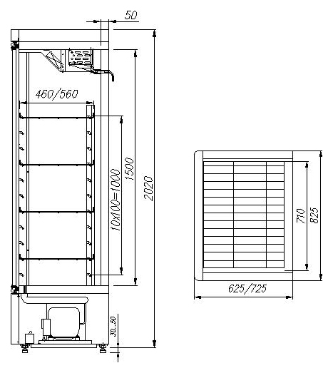 • холодильный агрегат Danfoss с верхним расположением компрессора;