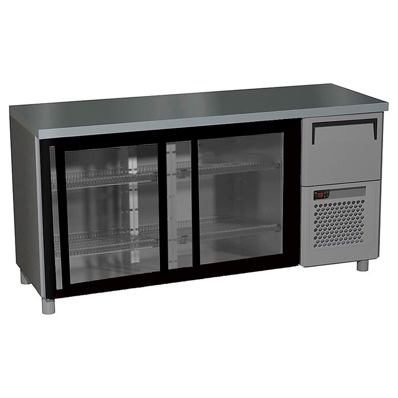 Стол холодильный барный Carboma Т57 М2-1-С 9006-1 корпус серый, без борта (BAR-360 К Rosso) — профессиональное оборудование для кратковременного хранения гастрономической продукции, готовых закусок, нарезок, ингредиентов для салатов и коктейлей, а также напитков. Может использоваться как самостоятельная единица или встраиваться в барные стойки и мебель глубиной от 600 мм. Стол совмещает функции холодильного шкафа и полноценного рабочего стола, столешница без борта облегчает интеграцию стола в рабочую линию.