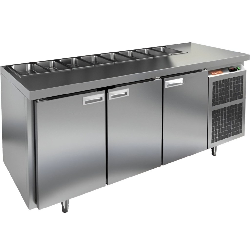 Каталог оборудования Холодильное оборудованиеСтолы охлаждаемыеСтолы холодильные для салатовСтол холодильный для салатов HiCold SL1-111SN (1/3) О без крышки Стол холодильный для салатов HiCold SL1-111SN (1/3) О без крышки Код товара: 064-522 Поделиться: WhatsAppTelegram СравнитьДобавить в КПВ избранное 0 163 161 ₽ В корзину 0 шт Под заказСамовывоз сегодня бесплатно Взять в кредит Купить в лизинг Получить консультацию в WhatsApp Описание Характеристики Отзывы 0 Инструкции 2 Стол холодильный для салатов HiCold SL1-111SN (1/3) О без крышки предназначен для предприятий общественного питания и торговли. Он обеспечивает хранение и подготовку ингредиентов для пиццы, салатов и других блюд, а также охлаждение и кратковременное хранение скоропортящихся продуктов. Модель сочетает рабочую поверхность и холодильный объем, позволяя повару иметь все необходимые компоненты под рукой. Корпус и столешница выполнены из нержавеющей стали, обеспечивая надежность и долговечность. Особенности: Динамическая система охлаждения — равномерное распределение температуры внутри холодильного объема. Автоматическая оттайка — упрощает уход за оборудованием. Электронная панель управления — точная настройка температуры и режимов работы. 3 вместительные внутренние полки формата GN 1/1 — удобное хранение ингредиентов. Автоматические доводчики дверей с фиксатором открытого положения — комфорт и безопасность работы. Легкозаменяемые магнитные уплотнители — простота обслуживания. Открытая агрегатная часть — облегчает доступ для обслуживания. Регулируемые по высоте ножки — адаптация к рабочей поверхности. Столешница без борта и без крышки, толщина столешницы и теплоизоляции 50 мм — надежная защита и удобство работы. Размер полки: 430×320мм (GN 1/1) Максимальная глубина гастроемкостей: 100 мм HiCold SL1-111SN (1/3) О без крышки — многофункциональный и надежный стол для профессиональной кухни. Обеспечивает удобство работы, эффективное охлаждение и безопасное хранение продуктов. Мобильная модификация с колёсами позволяет легко перемещать стол, что делает его идеальным для ресторанов, кафе и пиццерий.Изображение товара, представленного на фото, может отличаться от его фактического вида. Показать все Габаритные размеры1835×600×850 ммДиапазон рабочей температурыот +2 до +10 °CРасположение агрегатаБоковое Материал столешницыНержавеющая Тип столаС дверьми Тип двериГлухая Объём435 лКоличество дверей3 штТип гастроемкостейGN 1/3 Размер полки430×320 ммНапряжение220 ВМощность0,46 кВтТип охлажденияДинамический Тип оттайкиАвтоматическая СтолешницаБез борта Вес нетто120 кгВес брутто183 кгБрендHicold Оставить отзыв Еще никто не оставил отзыв на этот товар Паспорт на HICOLD SL1-111SN О.pdfДекларация о соответствии.pdf Ранее просмотрено Под заказ 163 612 ₽ Стол холодильный для салатов HiCold SL1-111GN (1/3) О без крышки