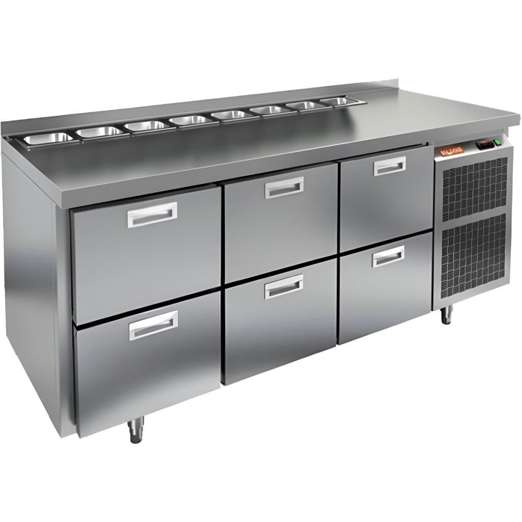 Каталог оборудования Холодильное оборудованиеСтолы охлаждаемыеСтолы холодильные для салатовСтол холодильный для салатов HiCold SL1-222GN (1/3) без крышки Стол холодильный для салатов HiCold SL1-222GN (1/3) без крышки Код товара: 064-845 Поделиться: WhatsAppTelegram СравнитьДобавить в КПВ избранное 0 255 412 ₽ В корзину 0 шт Под заказСамовывоз сегодня бесплатно Взять в кредит Купить в лизинг Получить консультацию в WhatsApp Описание Характеристики Отзывы 0 Инструкции 1 Стол холодильный для салатов HiCold SL1-222GN (1/3) без крышки предназначен для использования на предприятиях общественного питания и торговли. Он объединяет рабочую поверхность и охлаждаемый отсек, что делает его удобным решением для хранения, охлаждения и подготовки ингредиентов при приготовлении салатов, пиццы и других блюд. Такая конструкция позволяет повару работать быстрее и эффективнее, так как все необходимые продукты находятся под рукой. Корпус и столешница выполнены из прочной нержавеющей стали, устойчивой к коррозии и легко поддающейся санитарной обработке. Особенности модели: Электронная панель управления — точная настройка температурного режима. 6 выдвижных ящика — быстрое размещение и замена продуктов. Вместимость салат-бара — до 8 гастроемкостей глубиной до 100 мм. Автоматические доводчики дверей с фиксацией в открытом положении. Легкозаменяемые магнитные уплотнители — надежная герметичность. Открытая агрегатная часть — быстрый доступ для обслуживания. Регулируемые по высоте ножки — устойчивость даже на неровном полу. Толщина столешницы, борта и теплоизоляции — 50 мм, что обеспечивает прочность и энергоэффективность конструкции. HiCold SL1-222GN (1/3) бзе крышки — практичное и удобное решение для профессиональной кухни, обеспечивающее удобную подготовку и хранение ингредиентов.Изображение товара, представленного на фото, может отличаться от его фактического вида. Показать все Габаритные размеры1835×700×850 ммДиапазон рабочей температурыот +2 до +10 °CРасположение агрегатаБоковое Материал столешницыНержавеющая Тип столаС ящиками Объём505 лТип гастроемкостейGN 1/3 Количество ящиков6 штНапряжение220 ВМощность0,46 кВтТип охлажденияДинамическое Тип оттайкиАвтоматическая СтолешницаС бортом Габариты в упаковке2000×850×1000 ммВес нетто120 кгВес брутто140 кгБрендHicold Оставить отзыв Еще никто не оставил отзыв на этот товар Декларация о соответствии.pdf Ранее просмотрено В наличии 52 735 ₽ Ларь морозильный с двойной глухой крышкой Frostor F 500 SD Под заказ 201 502 ₽ Стол холодильный для салатов HiCold SLE3-22GN полипропилен, с крышкой Под заказ 162 270 ₽ Витрина холодильная Carboma GC110 VV 2,0-1 (ВХСр-2,0 Carboma CG 110 (динамика)) (1005 венге)