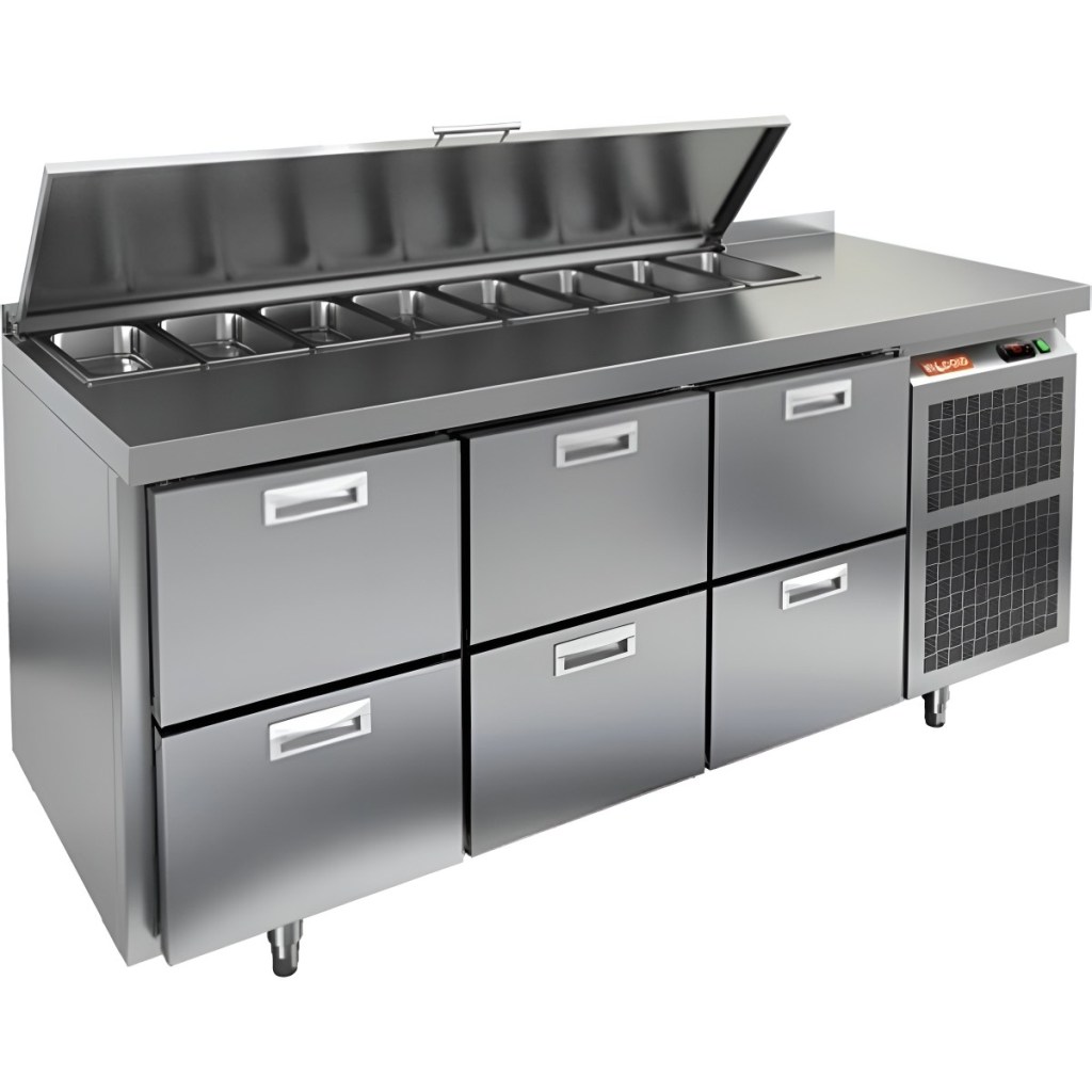 Каталог оборудования Холодильное оборудованиеСтолы охлаждаемыеСтолы холодильные для салатовСтол холодильный для салатов HiCold SL1-222GN (1/3) с крышкой Стол холодильный для салатов HiCold SL1-222GN (1/3) с крышкой Код товара: 064-844 Поделиться: WhatsAppTelegram СравнитьДобавить в КПВ избранное 0 260 092 ₽ В корзину 0 шт Под заказСамовывоз сегодня бесплатно Взять в кредит Купить в лизинг Получить консультацию в WhatsApp Описание Характеристики Отзывы 0 Инструкции 1 Стол холодильный для салатов HiCold SL1-222GN (1/3) предназначен для использования на предприятиях общественного питания и торговли. Он объединяет рабочую поверхность и охлаждаемый отсек, что делает его удобным решением для хранения, охлаждения и подготовки ингредиентов при приготовлении салатов, пиццы и других блюд. Такая конструкция позволяет повару работать быстрее и эффективнее, так как все необходимые продукты находятся под рукой. Корпус и столешница выполнены из прочной нержавеющей стали, устойчивой к коррозии и легко поддающейся санитарной обработке.Металлическая крышка защищает продукты от загрязнений и сохраняет их свежесть. Особенности модели: Электронная панель управления — точная настройка температурного режима. 6 выдвижных ящика — быстрое размещение и замена продуктов. Вместимость салат-бара — до 8 гастроемкостей глубиной до 100 мм. Автоматические доводчики — комфорт при загрузке/выгрузке. Легкозаменяемые магнитные уплотнители — надежная герметичность. Открытая агрегатная часть — быстрый доступ для обслуживания. Регулируемые по высоте ножки — устойчивость даже на неровном полу. Толщина столешницы, борта и теплоизоляции — 50 мм, что обеспечивает прочность и энергоэффективность конструкции. HiCold SL1-222GN (1/3) — практичное и удобное решение для профессиональной кухни, обеспечивающее удобную подготовку и хранение ингредиентов.Изображение товара, представленного на фото, может отличаться от его фактического вида. Показать все Габаритные размеры1835×700×850 ммДиапазон рабочей температурыот +2 до +10 °CРасположение агрегатаБоковое Материал столешницыНержавеющая Тип столаС ящиками Объём505 лТип гастроемкостейGN 1/3 Количество ящиков6 штРазмер полки530×325 ммНапряжение220 ВМощность0,46 кВтТип охлажденияДинамическое Тип оттайкиАвтоматическая СтолешницаС бортом Габариты в упаковке2000×850×1000 ммВес нетто120 кгВес брутто140 кгБрендHicold Оставить отзыв Еще никто не оставил отзыв на этот товар Декларация о соответствии.pdf Ранее просмотрено Под заказ 152 452 ₽ Стол холодильный для салатов HiCold SLE2-111GN (1/6) О З с крышкой