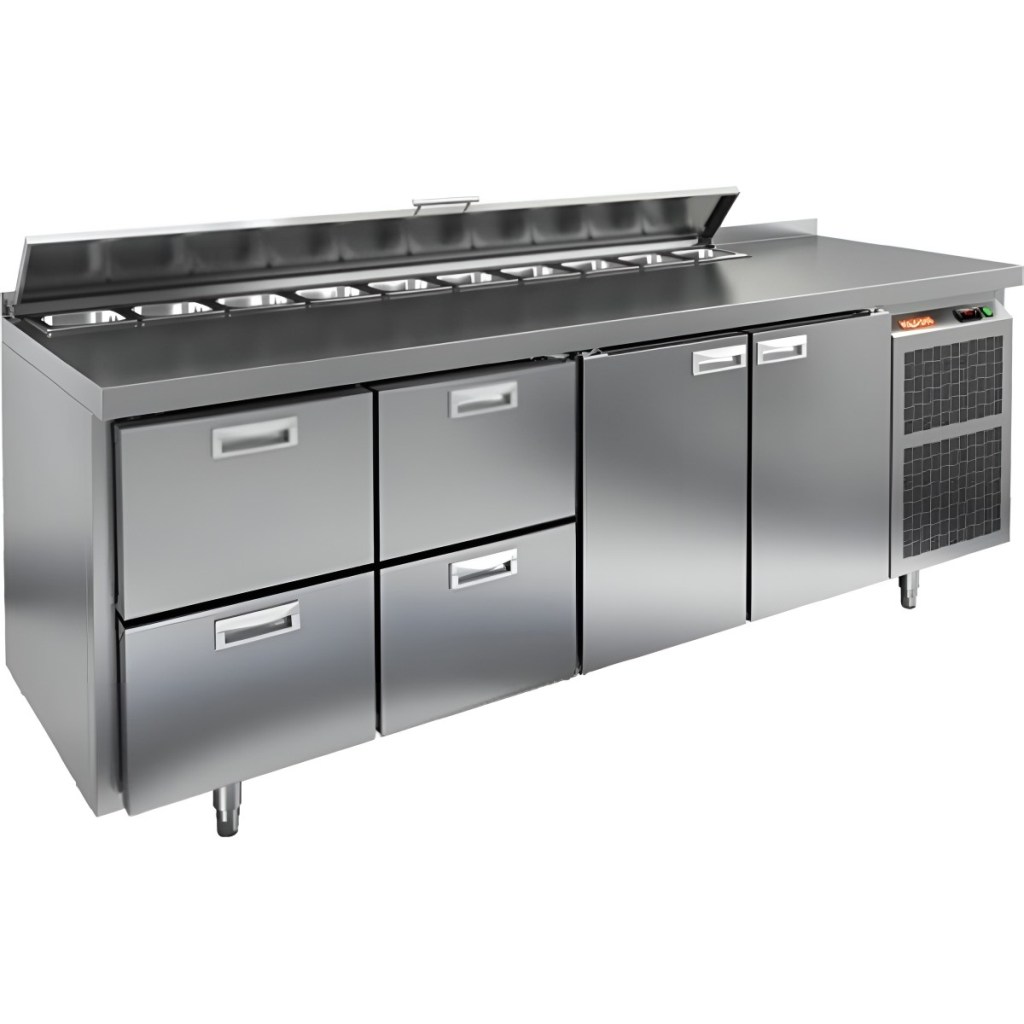 Каталог оборудования Холодильное оборудованиеСтолы охлаждаемыеСтолы холодильные для салатовСтол холодильный для салатов HiCold SL2-2211GN (1/6) с крышкой Стол холодильный для салатов HiCold SL2-2211GN (1/6) с крышкой Код товара: 064-823 Поделиться: WhatsAppTelegram СравнитьДобавить в КПВ избранное 0 258 922 ₽ В корзину 0 шт Под заказСамовывоз сегодня бесплатно Взять в кредит Купить в лизинг Получить консультацию в WhatsApp Описание Характеристики Отзывы 0 Инструкции 1 Стол холодильный для салатов HiCold SL2-2211GN (1/6) с крышкой предназначен для использования на предприятиях общественного питания и торговли. Он подходит для хранения, обработки и кратковременного охлаждения ингредиентов, применяемых при приготовлении пиццы, салатов, закусок и других блюд. Модель совмещает охлаждаемый объем и рабочую поверхность, что значительно повышает удобство и скорость работы персонала. Корпус и столешница выполнены из прочной и гигиеничной нержавеющей стали, устойчивой к влаге, загрязнениям и механическим повреждениям. Металлическая крышка защищает продукты от загрязнений и сохраняет их свежесть. Особенности модели: Электронная панель управления — точная настройка температуры. Салат-бар на 11 гастроемкостей — быстрый доступ к ингредиентам. 4 внутренних ящика — удобное размещение продуктов. 2 двери с автоматическими доводчиками — комфортный доступ к холодильному отсеку. Съёмные магнитные уплотнители — герметичность и стабильная температура. Открытая агрегатная часть — лёгкое обслуживание. Регулируемые ножки — установка на любой поверхности. Глубина гастроемкостей до 150 мм, столешница и теплоизоляция — 50 мм. Высота борта — 50 мм — защита рабочей поверхности. HiCold SL2-2211GN (1/6) с крышкой — универсальное и функциональное решение для профессиональной кухни, позволяющее оптимизировать рабочие процессы и повысить производительность за счет удобного хранения и быстрого доступа к ингредиентам.Изображение товара, представленного на фото, может отличаться от его фактического вида. Показать все Габаритные размеры2280×700×850 ммДиапазон рабочей температурыот +2 до +10 °CРасположение агрегатаБоковое Материал столешницыНержавеющая Тип столаС дверьми Тип двериГлухая Объём660 лКоличество дверей2 штТип гастроемкостейGN 1/6 Количество ящиков4 штРазмер полки530×325 ммНапряжение220 ВМощность0,48 кВтТип охлажденияДинамическое Тип оттайкиАвтоматическая СтолешницаС бортом Габариты в упаковке2420×850×1000 ммВес нетто155 кгВес брутто210 кгБрендHicold Оставить отзыв Еще никто не оставил отзыв на этот товар Декларация о соответствии.pdf Ранее просмотрено Под заказ 204 472 ₽ Стол холодильный для салатов HiCold SL1-22SN (1/3) с крышкой Под заказ 182 242 ₽ Стол холодильный для салатов HiCold SLE3-111GN полипропилен, с крышкой Под заказ 152 452 ₽ Стол холодильный для салатов HiCold SLE2-111GN (1/6) О З с крышкой