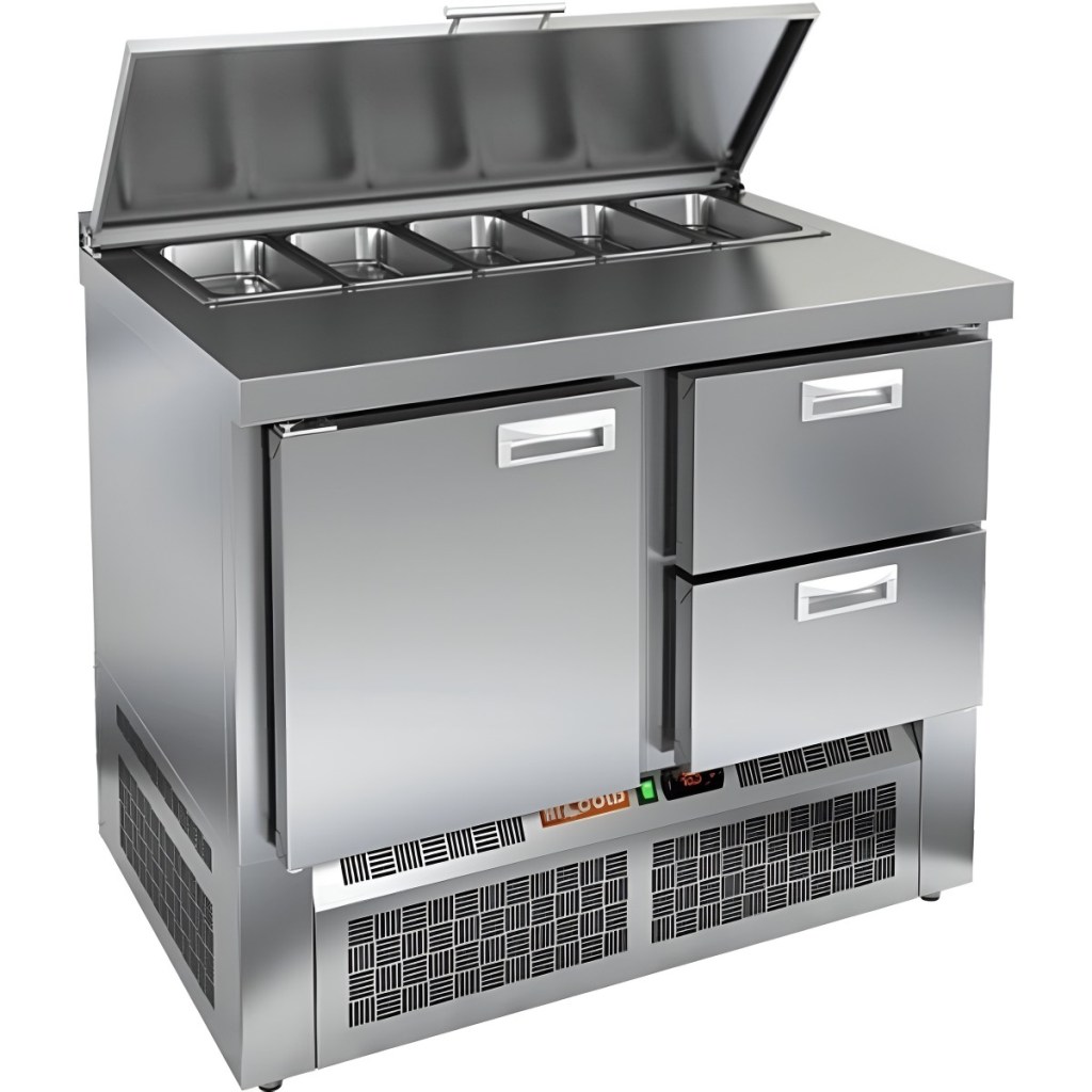 Модель сочетает в себе прочную рабочую поверхность и охлаждаемый внутренний объем, что упрощает процесс приготовления: все необходимые ингредиенты всегда под рукой. Корпус и столешница изготовлены из нержавеющей стали, устойчивой к воздействию влаги, механическим повреждениям и легко поддающейся очистке. Металлическая крышка защищает продукты от загрязнений и сохраняет их свежесть.
