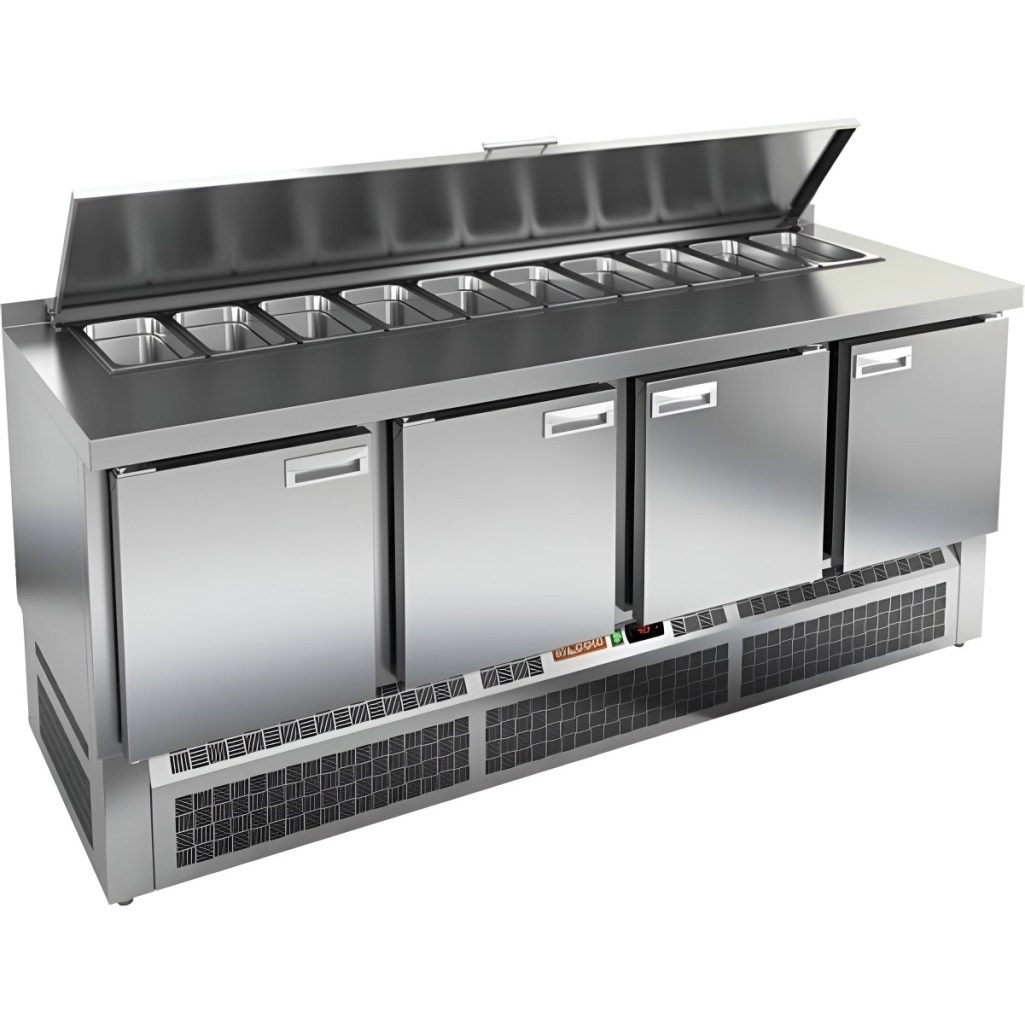 Каталог оборудования Холодильное оборудованиеСтолы охлаждаемыеСтолы холодильные для салатовСтол холодильный для салатов HiCold SLE2-1111SN (1/6) Стол холодильный для салатов HiCold SLE2-1111SN (1/6) Код товара: 061-996 Поделиться: WhatsAppTelegram СравнитьДобавить в КПВ избранное 0 171 351 ₽ В корзину 0 шт Под заказСамовывоз сегодня бесплатно Взять в кредит Купить в лизинг Получить консультацию в WhatsApp Описание Характеристики Отзывы 0 Инструкции 2 Стол холодильный для салатов HiCold SLE2-1111SN (1/6) — это профессиональный салатный стол, предназначенный для использования в кафе, ресторанах, пиццериях и других предприятиях общественного питания. Он совмещает в себе просторную рабочую поверхность и охлаждаемый объем, обеспечивая удобство и эффективность при приготовлении различных блюд — от салатов до пиццы. Благодаря корпусу и столешнице из нержавеющей стали, оборудование устойчиво к коррозии, легко очищается и соответствует санитарным требованиям. Ключевые особенности: Электронная панель управления — обеспечивает точное регулирование температуры и удобство в эксплуатации. 4 вместительные полки формата GN 1/1 — позволяют организовать хранение большого объема продуктов и ингредиентов. Салат-бар вмещает до 11 гастроемкостей — оптимален для широкого ассортимента заготовок. Автоматические доводчики дверей с фиксацией — повышают удобство использования, особенно при загрузке и выгрузке продуктов. Магнитные уплотнители — легко заменяются и обеспечивают плотное прилегание, предотвращая утечку холода. Открытая агрегатная часть — облегчает техническое обслуживание. Регулируемые ножки — позволяют установить стол на любой поверхности, компенсируя неровности пола. Глубина гастроемкостей — до 100 мм, толщина столешницы — 50 мм, высота борта — 50 мм, толщина теплоизоляции — 50 мм — обеспечивают стабильное охлаждение и прочность конструкции. HiCold SLE2-1111SN — это функциональный и вместительный салатный стол, который идеально подходит для профессиональных кухонь с интенсивной загрузкой. Он сочетает в себе надежность, удобство и продуманную конструкцию для максимальной производительности на рабочем месте.Изображение товара, представленного на фото, может отличаться от его фактического вида. Показать все Габаритные размеры1970×600×850 ммДиапазон рабочей температурыот +2 до +10 °CРасположение агрегатаНижнее Материал столешницыНержавеющая Тип столаС дверьми Тип двериГлухая Объём430 лКоличество дверей4 штТип гастроемкостейGN 1/6 Размер полки430х×325 ммНапряжение220 ВМощность0,46 кВтТип охлажденияДинамическое Тип оттайкиАвтоматическая СтолешницаС бортом Вес нетто104 кгВес брутто148 кгБрендHicold Оставить отзыв Еще никто не оставил отзыв на этот товар Паспорт на HICOLD SLE2-1111SN.pdfДекларация о соответствии.pdf Ранее просмотрено В наличии 271 521 ₽ Стол холодильный для пиццы HiCold PZE3-1111/GN камень