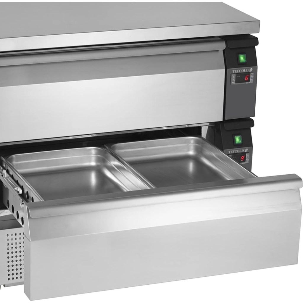 Каталог оборудования Холодильное оборудованиеСтолы охлаждаемыеСтолы холодильные комбинированныеСтол холодильно-морозильный TEFCOLD UD2-2 Стол холодильно-морозильный TEFCOLD UD2-2 Код товара: 066-726 Поделиться: WhatsAppTelegram 0 Цена по запросу Получить консультацию в WhatsApp Описание Характеристики Отзывы 0 Инструкции 2 Стол холодильно-морозильный TEFCOLD UD2-2 предназначен для раскатки теста, обработки ингредиентов и кратковременного хранения продуктов на предприятиях общественного питания и торговли. Модель оснащена столешницей без борта, двумя выдвижными ящиками формата GN2/1, термометром и четырьмя поворотными колесами, два из которых снабжены тормозами. Корпус и внутренняя отделка выполнены из прочной нержавеющей стали марки SS304, что обеспечивает надежность, устойчивость к коррозии и лёгкость в уходе. Особенности модели: Эффективная система динамического охлаждения для равномерного распределения температуры Автоматическая оттайка, исключающая образование наледи Современный электронный контроллер для точного управления параметрами Возможность переключения между холодильным и морозильным режимами Вместительные выдвижные ящики GN2/1 с прочными направляющими (до 60 кг на ящик) Прочная столешница, выдерживающая нагрузку до 240 кг Экологически безопасный хладагент R290 Климатический класс: 5 Мобильная конструкция на поворотных колесах с фиксаторами Общий объём: 179 л, полезный: 102 л Температурный диапазон: • Холодильный режим — от 1 до 4 °C • Морозильный режим — от −21 до −18 °C Входная мощность: 0,54 кВт Энергопотребление: 3,66 кВт/сутки (1336 кВт⋅ч/год) Уровень шума: 54 дБ Подзарядка хладагентом: 140 г Внутренние размеры: 675×565×470 мм TEFCOLD UNI-DRAWER UD2-2 — компактный и функциональный холодильный стол, сочетающий удобство работы и надёжное охлаждение. Благодаря прочной конструкции из нержавеющей стали, вместительным ящикам и возможности выбора режима работы (охлаждение или заморозка), модель идеально подходит для профессиональных кухонь и предприятий общественного питания.Изображение товара, представленного на фото, может отличаться от его фактического вида. Показать все Габаритные размеры905×700×865 ммТемпература морозильного отделенияот -21 до -18 °CТемпература холодильного отделенияот +1 до +4 °CРасположение агрегатаНижнее Материал столешницыНержавеющая Тип столаС дверьми Тип двериГлухая Общий объем179 лПолезный объем102 лКоличество ящиков2 штКлиматический класс5 Напряжение220 ВМощность0,54 кВтТип охлажденияДинамический Тип оттайкиАвтоматическая ХладагентR290 Габариты в упаковке980×770×1000 ммВес нетто113 кгВес брутто125 кгБрендTefcold Оставить отзыв Еще никто не оставил отзыв на этот товар Инструкция на TEFCOLD UNI-DRAWER UD2-2.pdfСпецификация на TEFCOLD UNI-DRAWER UD2-2.pdf Ранее просмотрено В наличии 287 361 ₽ Стол морозильный HiCold BN 1122 BR2 BT Под заказ 193 756 ₽ Стол морозильный Ангара СХБ 2,280-700