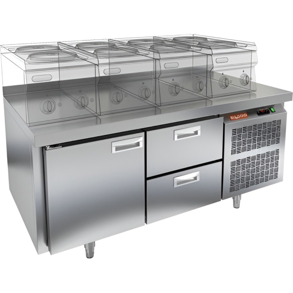 Каталог оборудования Холодильное оборудованиеСтолы охлаждаемыеСтолы холодильные под тепловое оборудованиеСтол охлаждаемый HiCold GN 12/TN LT SH под тепловое оборудование Стол охлаждаемый HiCold GN 12/TN LT SH под тепловое оборудование Код товара: 065-292 Поделиться: WhatsAppTelegram СравнитьДобавить в КПВ избранное 0 140 211 ₽ В корзину 0 шт Под заказСамовывоз сегодня бесплатно Взять в кредит Купить в лизинг Получить консультацию в WhatsApp Описание Характеристики Отзывы 0 Инструкции 2 Стол охлаждаемый HiCold GN 12/TN LT SH под тепловое оборудование предназначен для обработки ингредиентов и временного хранения скоропортящихся продуктов и напитков на предприятиях общественного питания и торговли. Устройство совмещает функции рабочей поверхности и холодильной камеры. Столешница рассчитана на установку теплового оборудования: под рабочей поверхностью встроен ДСП-лист, который укрепляет конструкцию и препятствует проникновению тепла внутрь. Такое решение обеспечивает дополнительную жесткость, позволяет рационально использовать рабочее пространство и повышает эффективность работы на кухне. Особенности: 1 распашная дверь и 2 выдвижные секции — удобный доступ к хранимым продуктам. Автоматические доводчики дверей с фиксатором открытого положения повышают эргономику и способствуют сохранению холода. Легкозаменяемые магнитные уплотнители обеспечивают плотное прилегание дверей и лёгкость в обслуживании. Открытая агрегатная часть упрощает доступ к компрессору при техническом обслуживании. Конструкция на низких ножках обеспечивает стабильность и удобство эксплуатации. Толщина столешницы — 50 мм обеспечивает прочность рабочей поверхности. Высота борта — 50 мм предотвращает падение продуктов и инвентаря. Толщина теплоизоляции — 50 мм способствует энергоэффективности и стабильному температурному режиму. HiCold GN 12/TN LT SH — это надёжное и удобное оборудование, сочетающее охлаждение и рабочее пространство. Благодаря продуманной конструкции и совместимости с гастроемкостями GN 1/1, стол станет практичным решением для кухни любого профессионального уровня.Изображение товара, представленного на фото, может отличаться от его фактического вида. Показать все Габаритные размеры1390×700×610 ммДиапазон рабочей температурыот -2 до +10 °CМатериал столешницыНержавеющая Расположение агрегатаБоковое Объём255 лТип столаС дверьми и ящиками Тип двериГлухая Количество дверей1 штКоличество ящиков2 штРазмер полки530×325 ммНапряжение220 ВМощность0,22 кВтТип охлажденияДинамический Тип оттайкиАвтоматическая СтолешницаС бортом Габариты в упаковке1550×850×850 ммВес нетто128 кгВес брутто148 кгБрендHicold Оставить отзыв Еще никто не оставил отзыв на этот товар Паспорт на HICOLD GN 12TN LT SH.pdfДекларация о соответствии.pdf Похожие товары Перейти в каталог В наличии 77 661 ₽ Стол холодильный среднетемпературный HiCold GN 11/TN W Под заказ 125 670 ₽ Стол холодильный среднетемпературный Abat СХС-70-01 с бортом (дверь, дверь) С этим товаром покупают В наличии 201 690 ₽ Шкаф морозильный Полюс Carboma F1400 В наличии 195 030 ₽ Плита индукционная Аbat КИП-47Н Ранее просмотрено Под заказ 194 392 ₽ Стол холодильный для салатов HiCold SLE3-1111GN низкое стекло Под заказ 185 694 ₽ Шкаф шоковой заморозки COOLEQ CQF-5 В наличии 207 486 ₽ Шкаф холодильный TEFCOLD RKS600FISH для рыбы нержавеющий Под заказ 130 042 ₽ Стол охлаждаемый HiCold SN 111/TN LT О SH под тепловое оборудование Под заказ 160 822