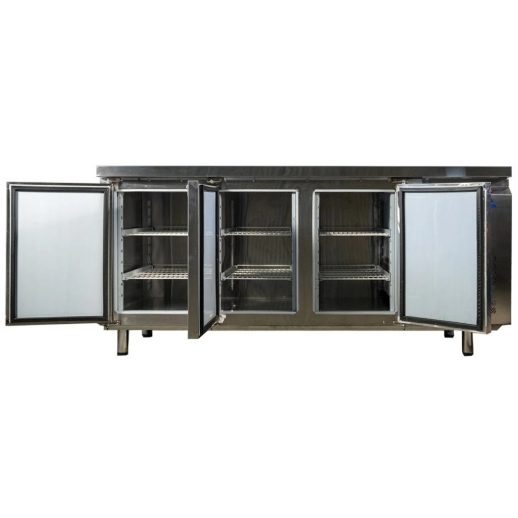 Каталог оборудования Холодильное оборудованиеСтолы охлаждаемыеСтолы холодильные среднетемпературныеСтол холодильный среднетемпературный Ангара СХБ 1,835-700 Стол холодильный среднетемпературный Ангара СХБ 1,835-700 Код товара: 066-353 Поделиться: WhatsAppTelegram СравнитьДобавить в КПВ избранное 0 140 538 ₽ В корзину 0 шт Под заказСамовывоз сегодня бесплатно Взять в кредит Купить в лизинг Получить консультацию в WhatsApp Описание Характеристики Отзывы 0 Стол холодильный среднетемпературный Ангара СХБ 1,835-700 предназначен для обработки ингредиентов и кратковременного хранения скоропортящихся продуктов и напитков на предприятиях общественного питания и торговли. Модель сочетает компактные размеры, функциональность и надёжность, обеспечивая удобство работы на кухне. Особенности модели: Электронное управление — интуитивно понятная панель позволяет точно регулировать температурный режим и контролировать работу устройства. Корпус и столешница из нержавеющей стали — обеспечивают долговечность, устойчивость к коррозии и лёгкость в уходе. Три дверцы и три полки размером 530×325 мм — обеспечивают удобный доступ к продуктам и рациональное использование внутреннего пространства. Регулируемые ножки — позволяют адаптировать высоту стола под индивидуальные условия рабочей зоны. Автоматические доводчики дверей с фиксацией — двери закрываются плавно и остаются зафиксированными в открытом положении при необходимости. Съёмные магнитные уплотнители — упрощают чистку и замену, поддерживая герметичность и эффективность охлаждения. Диапазон температур: -2…+10 °C / +2…+10 °C, что позволяет использовать стол как для охлаждённых, так и для быстро портящихся продуктов. Холодильный стол Ангара СХБ 1,835-700 — это практичное и надёжное решение для профессиональных кухонь и торговых точек. Совмещение эргономичной конструкции, долговечных материалов и точного электронного контроля температуры обеспечивает удобство эксплуатации и эффективное хранение продуктов в оптимальных условиях.Изображение товара, представленного на фото, может отличаться от его фактического вида. Показать все Габаритные размеры1835×700×850 ммДиапазон рабочей температурыот -2 до +10 °CРасположение агрегатаБоковое Материал столешницыНержавеющая Тип столаС дверьми Тип двериГлухая Объём505 лКоличество дверей3 штКоличество полок3 штРазмер полки530×325 ммНапряжение220 ВМощность0,46 кВтТип охлажденияДинамическое Тип оттайкиАвтоматическая СтолешницаС бортом БрендАнгараВсе нержавеющие холодильные столы Все холодильные столы с бортом Оставить отзыв Еще никто не оставил отзыв на этот товар Ранее просмотрено Под заказ 139 860 ₽ Витрина холодильная Carboma GC111 VM 2,0-1 (1010 Мариель) (динамика, без боковин)