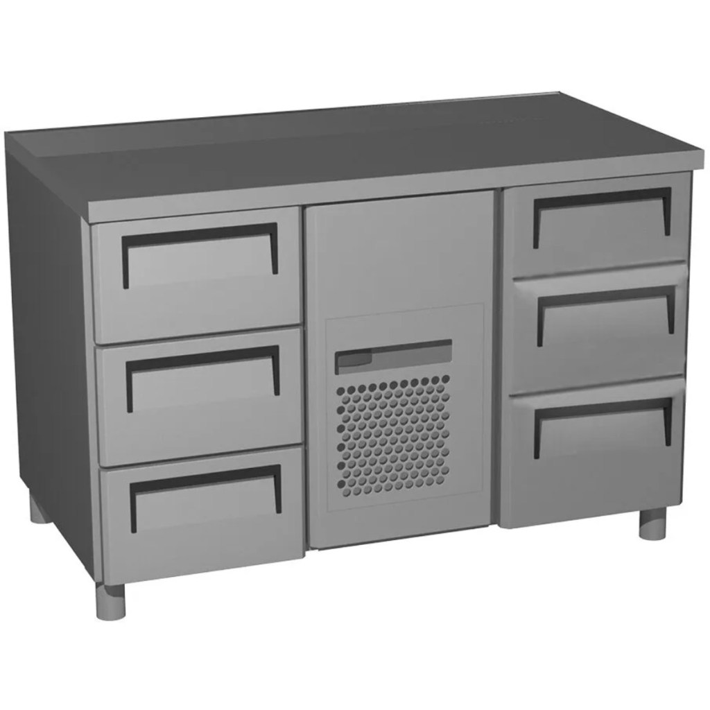 Стол холодильный среднетемпературный Carboma T70 M2-1 (2GN/NT Carboma) без борта (0430-1 корпус нерж 6 ящ) — профессиональное оборудование для предприятий общественного питания и торговли. Предназначен для раскатки теста, подготовки ингредиентов, охлаждения и кратковременного хранения скоропортящихся продуктов и напитков. Модель оснащена шестью выдвижными ящиками и регулируемыми ножками высотой от 90 до 110 мм.