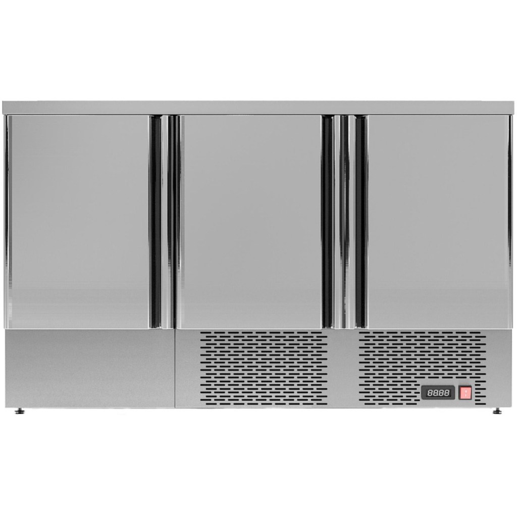 Каталог оборудования Холодильное оборудованиеСтолы охлаждаемыеСтолы холодильные среднетемпературныеСтол холодильный среднетемпературный Polair TMi3GN-G без борта Стол холодильный среднетемпературный Polair TMi3GN-G без борта Код товара: 062-561 Поделиться: WhatsAppTelegram СравнитьДобавить в КПВ избранное 0 129 039 ₽ В корзину 0 шт В наличии на 1 складеДоступно для заказа 2 шт.Наличие на складахМоскваМО, Бритово, Раменский гор. округ, Складской комплекс ССТ, корп. 2, секция 2В наличии 2 шт.Самовывоз сегодня бесплатно Расчет стоимости доставкиОткудаМоскваКудаМоскваСанкт-ПетербургАстраханьБарнаулБелгородБрянскВладивостокВолгоградВоронежЕкатеринбургИвановоИжевскИркутскКазаньКалининградКемеровоКировКраснодарКрасноярскКурскЛипецкМагнитогорскМахачкалаНабережные ЧелныНижний НовгородНижний ТагилНовокузнецкНовосибирскОмскОренбургПензаПермьПятигорскРостов-на-ДонуРязаньСамараСаратовСимферопольСтавропольТверьТольяттиТомскТулаТюменьУлан-УдэУльяновскУфаХабаровскЧебоксарыЧелябинскЯрославльРассчитатьРасчет стоимости доставки указан приблизительный, более точный расчет Вам может осуществить сотрудник транспортной компании. Взять в кредит Купить в лизинг Получить консультацию в WhatsApp Описание Характеристики Отзывы 0 Инструкции 1 Стол холодильный среднетемпературный Polair TMi3GN-G без борта предназначен для хранения продуктов и обработки ингредиентов на рабочей поверхности в заведениях общественного питания и торговли. Цельнозаливные корпус и двери выполнены из прочной стали, что обеспечивает высокую механическую прочность, надёжную термоизоляцию, герметичность и длительный срок эксплуатации. Стол разработан для работы при температуре окружающей среды до 43 °С и относительной влажности воздуха до 80%, что делает его идеальным решением для профессиональной кухни. Особенности: Электронный терморегулятор для точного контроля температуры; Эластичные уплотнители с магнитными вставками для максимальной герметизации; Класс защиты IP24, гарантирующий безопасную работу; Регулируемые по высоте ножки для удобной установки; Толщина столешницы — 40 мм, что обеспечивает прочность рабочей поверхности; Толщина стенок корпуса — 43 мм для улучшенной теплоизоляции; Тип полок: Gastronorm GN 1/1 — универсальный стандарт для гастроемкостей; Комплектация: 3 вместительные полки. Polair TMi3GN-G без борта сочетает прочную конструкцию, современный функционал и надёжность. Он подходит для интенсивного использования на профессиональной кухне, обеспечивая удобство хранения и подготовки продуктов. Благодаря продуманному дизайну и высококачественным материалам, стол поможет повысить эффективность работы персонала и создать комфортные условия для ежедневных задач.Изображение товара, представленного на фото, может отличаться от его фактического вида. Показать все Габаритные размеры1375×700×850 ммДиапазон рабочей температурыот -2 до +10 °CРасположение агрегатаНижнее Материал столешницыНержавеющая Тип столаС дверьми Тип двериГлухая Объём276 лКоличество дверей3 штКоличество полок3 штТип гастроемкостейGN 1/1 Напряжение220 ВМощность0,35 кВтТип охлажденияДинамическое Тип оттайкиАвтоматическая ХладагентR290 СтолешницаБез борта Габариты в упаковке1520×820×1120 ммВес нетто120 кгВес брутто150 кгБрендPolairВсе холодильные столы PolairВсе нержавеющие холодильные столы Все холодильные с