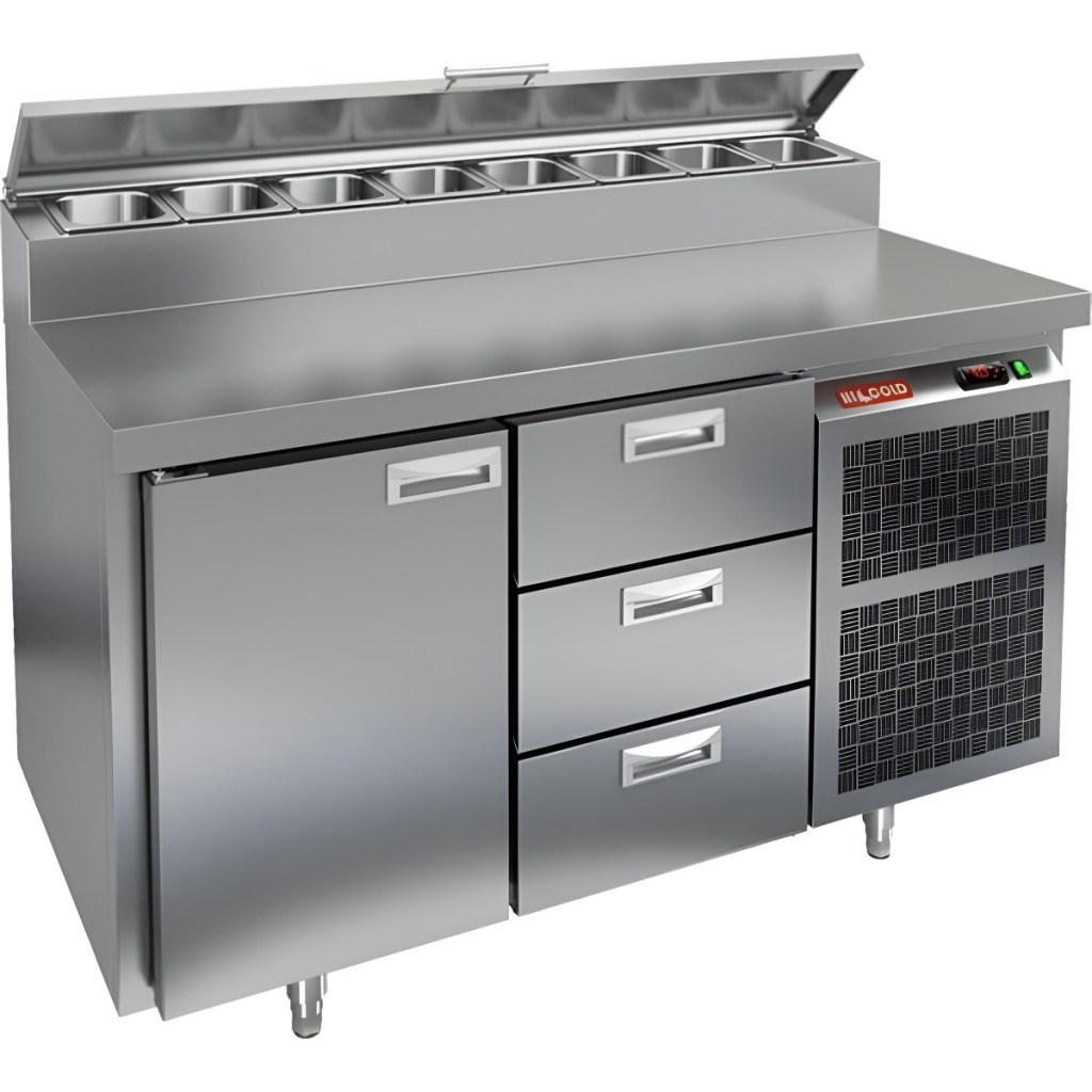 Каталог оборудования Холодильное оборудованиеСтолы охлаждаемыеСтолы холодильные для пиццыСтол холодильный для пиццы HiCold PZ1-13/GN (1/3) Стол холодильный для пиццы HiCold PZ1-13/GN (1/3) Код товара: 064-702 Поделиться: WhatsAppTelegram СравнитьДобавить в КПВ избранное 0 229 942 ₽ В корзину 0 шт Под заказСамовывоз сегодня бесплатно Взять в кредит Купить в лизинг Получить консультацию в WhatsApp Описание Характеристики Отзывы 0 Инструкции 2 Стол холодильный для пиццы HiCold PZ1-13/GN (1/3) — профессиональное решение для предприятий общественного питания и торговли. Он объединяет удобную рабочую поверхность для раскатки теста и подготовки ингредиентов с охлаждаемым блоком для хранения скоропортящихся продуктов и напитков. Корпус и столешница выполнены из нержавеющей стали, обеспечивающей прочность, долговечность и лёгкость ухода. Основные особенности: Нержавеющая столешница и корпус — прочность, гигиеничность и лёгкость очистки Динамическая система охлаждения — равномерное распределение холода Автоматическая оттайка — стабильная работа без образования наледи Электронная панель управления — точная настройка температуры 1 дверца и 3 выдвижных ящика — удобная организация внутреннего пространства 1 вместительная полка формата GN 1/1 (размер 530×325 мм) Автоматические доводчики дверей с фиксатором открытого положения — комфорт при работе Легкозаменяемые магнитные уплотнители — поддержание герметичности Открытая агрегатная часть — удобный доступ для обслуживания Регулируемые по высоте ножки — установка на неровных поверхностях Максимальная глубина гастроёмкостей: 100 мм Глубина рабочей поверхности: 324 мм Толщина столешницы и теплоизоляции: 50 мм Вместимость салат-бара: до 7 гастроёмкостей Стол холодильный HiCold PZ1-13/GN (1/3) — это компактный и функциональный стол для пиццы и салатов. Он сочетает рабочую поверхность, охлаждаемый блок и защиту ингредиентов, обеспечивая удобство, высокую производительность и долговечность в профессиональной кухне.Изображение товара, представленного на фото, может отличаться от его фактического вида. Показать все Габаритные размеры1390×700×1000 ммДиапазон рабочей температурыот +2 до +10 °CРасположение агрегатаБоковое Материал столешницыНержавеющая Тип столаС дверьми и ящиками Тип двериГлухая Объём350 лТип гастроемкостейGN 1/3 Количество дверей1 штКоличество ящиков3 штРазмер полки530×325 ммНапряжение220 ВМощность0,22 кВтТип охлажденияДинамическое Тип оттайкиАвтоматическая Габариты в упаковке1490×800×1080 ммВес нетто141 кгВес брутто161 кгБрендHicoldВсе холодильные столы для пиццы HicoldВсе нержавеющие холодильные столы для пиццы Оставить отзыв Еще никто не оставил отзыв на этот товар Паспорт на HICOLD PZ1-13/GN.pdfДекларация о соответствии.pdf Ранее просмотрено Под заказ 120 690 ₽ Стол морозильный Carboma T70 L2-1 (2GN/LT Полюс) с бортом (9006-2 корпус серый)