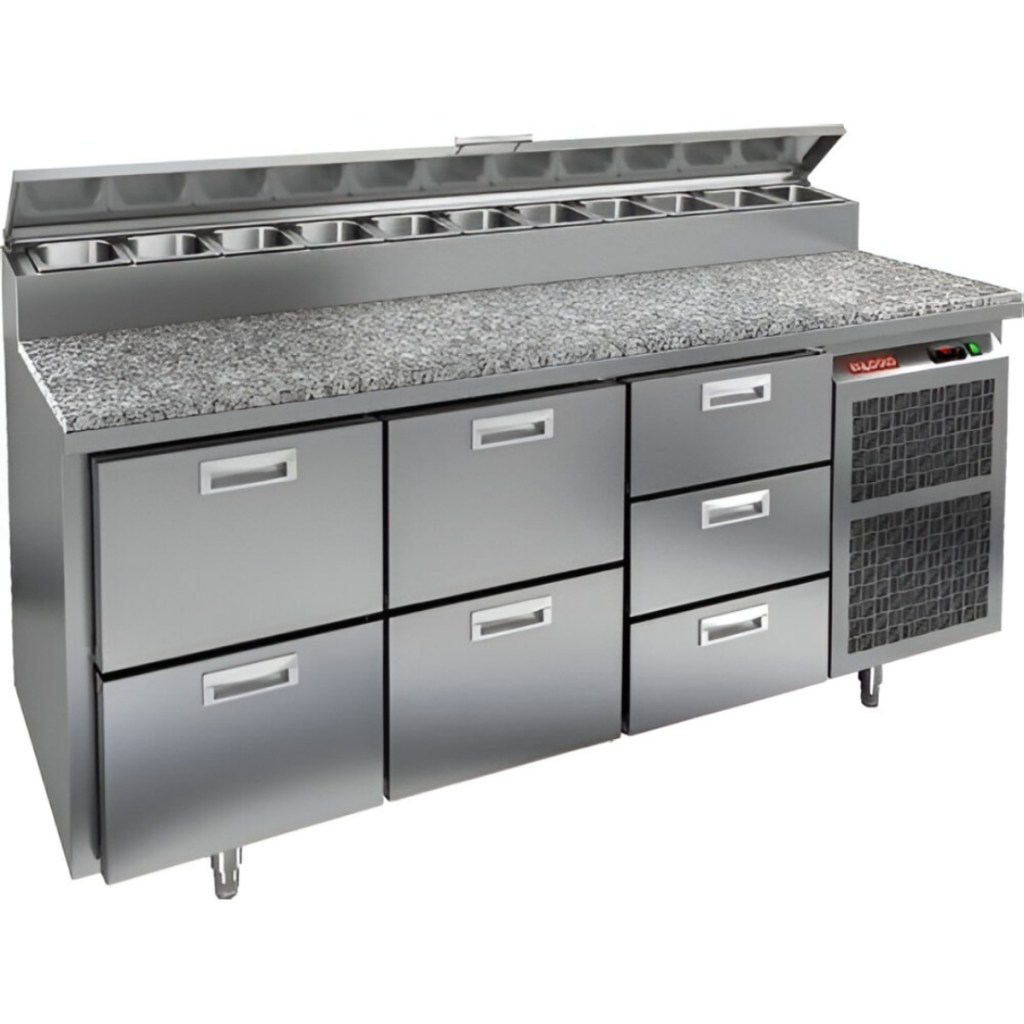 Каталог оборудования Холодильное оборудованиеСтолы охлаждаемыеСтолы холодильные для пиццыСтол холодильный для пиццы HiCold PZ2-223GN (1/6) камень Стол холодильный для пиццы HiCold PZ2-223GN (1/6) камень Код товара: 064-772 Поделиться: WhatsAppTelegram СравнитьДобавить в КПВ избранное 0 353 962 ₽ В корзину 0 шт Под заказСамовывоз сегодня бесплатно Взять в кредит Купить в лизинг Получить консультацию в WhatsApp Описание Характеристики Отзывы 0 Стол холодильный для пиццы HiCold PZ2-223GN (1/6) камень предназначен для профессиональных кухонь и предприятий общественного питания. Он используется для раскатки теста, подготовки ингредиентов для пиццы, салатов и других блюд, а также для охлаждения и кратковременного хранения скоропортящихся продуктов. Модель совмещает гранитную рабочую поверхность и охлаждаемый отсек с 7 выдвижными ящиками, что обеспечивает максимальное удобство доступа к ингредиентам и эффективное распределение хранения. Особенности: Динамическая система охлаждения для равномерного поддержания температуры Автоматическая оттайка для удобного обслуживания Электронная панель управления для точной настройки параметров Вместительная внутренняя полка формата GN 1/1 (размер 530×325 мм) 7 выдвижных ящиков для хранения ингредиентов Легкозаменяемые магнитные уплотнители для герметичности Открытая агрегатная часть для легкого доступа к компонентам Регулируемые по высоте ножки для устойчивости Гранитная столешница глубиной 486 мм и толщиной 50 мм — устойчива к повреждениям, легко моется и гигиенична Толщина теплоизоляции: 50 мм Максимальная глубина гастроемкостей: 100 мм Вместимость салат-бара: 11 гастроемкости Стол холодильный HiCold PZ2-223GN (1/6) камень— это профессиональное решение для кухонь с высоким потоком заказов. Он сочетает прочность, функциональность и удобство, обеспечивая идеальные условия для хранения и подготовки ингредиентов.Изображение товара, представленного на фото, может отличаться от его фактического вида. Показать все Габаритные размеры1835×700×1000 ммДиапазон рабочей температурыот +2 до +10 °CРасположение агрегатаБоковое Материал столешницыГранитная Тип столаС ящиками Объём505 лТип гастроемкостейGN 1/6 Количество ящиков7 штРазмер полки530×325 ммНапряжение220 ВМощность0,5 кВтТип охлажденияДинамическое Тип оттайкиАвтоматическая Габариты в упаковке2000×850×1140 ммВес нетто172 кгВес брутто248 кгБрендHicoldВсе холодильные столы для пиццы Hicold Оставить отзыв Еще никто не оставил отзыв на этот товар Ранее просмотрено Под заказ 193 312 ₽ Стол холодильный для пиццы HiCold PZ2-11/GN (1/6H) стекло