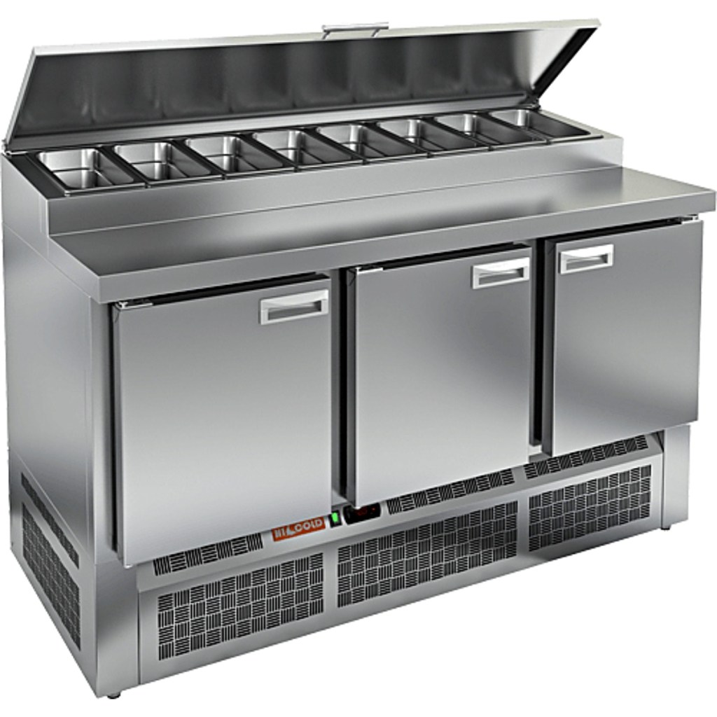Стол холодильный для пиццы HiCold PZE1-111GN (1/3) М — профессиональное оборудование для предприятий общественного питания и торговли. Он предназначен для раскатки теста и подготовки ингредиентов, используемых при приготовлении пиццы, салатов и других блюд, а также для охлаждения и кратковременного хранения скоропортящихся продуктов и напитков. Совмещение рабочей поверхности и охлаждаемого блока значительно упрощает работу повара — все необходимые компоненты находятся под рукой. Корпус и столешница выполнены из нержавеющей стали, обеспечивая долговечность, устойчивость к повреждениям и лёгкость ухода.