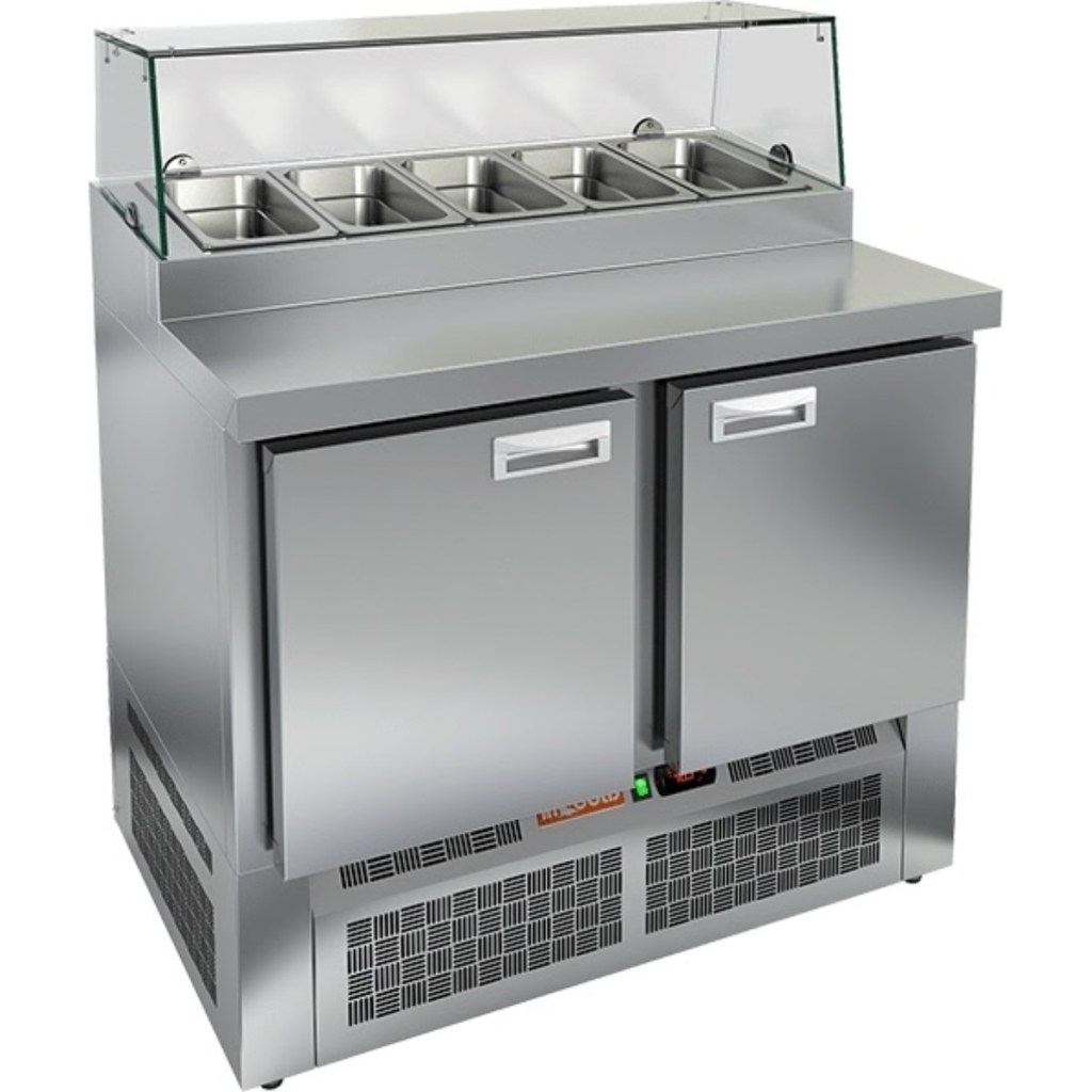Стол холодильный для пиццы HiCold PZE2-11/GN (1/6H) стекло предназначен для использования на предприятиях общественного питания и торговли. Он сочетает в себе функциональную охлаждаемую камеру и удобную рабочую поверхность, обеспечивая повару комфортную и организованную зону для приготовления блюд — от раскатки теста до сборки салатов и пиццы.
