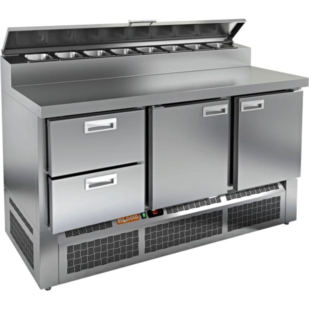 Каталог оборудования Холодильное оборудованиеСтолы охлаждаемыеСтолы холодильные для пиццыСтол холодильный для пиццы HiCold PZE2-211/GN (1/6H) Стол холодильный для пиццы HiCold PZE2-211/GN (1/6H) Код товара: 064-973 Поделиться: WhatsAppTelegram СравнитьДобавить в КПВ избранное 0 217 162 ₽ В корзину 0 шт Под заказСамовывоз сегодня бесплатно Взять в кредит Купить в лизинг Получить консультацию в WhatsApp Описание Характеристики Отзывы 0 Стол холодильный для пиццы HiCold PZE2-211/GN (1/6H) предназначен для использования на предприятиях общественного питания и торговли. Он совмещает охлаждаемый объём и удобную рабочую поверхность, обеспечивая повару быстрый доступ к ингредиентам и комфорт при подготовке блюд — от пиццы и салатов до закусок и десертов. Модель отличается прочной и гигиеничной конструкцией: корпус и столешница изготовлены из нержавеющей стали, что гарантирует износостойкость и лёгкость в уходе даже при интенсивной эксплуатации. Ключевые особенности: Электронная панель управления – точная регулировка температурного режима 2 глухие дверцы – надёжное хранение продуктов и удобство эксплуатации 2 выдвижных ящика – быстрая организация ингредиентов и лёгкий доступ к ним Салат-бар на 8 гастроемкостей – удобное размещение и быстрый доступ к ингредиентам Автоматические доводчики дверей с фиксатором открытого положения – комфорт при работе Легкозаменяемые магнитные уплотнители – надёжная герметизация и простота обслуживания Открытая агрегатная часть – лёгкий доступ для технического обслуживания Регулируемые по высоте ножки – устойчивость на разных типах покрытия Максимальная глубина гастроемкостей: 100 мм Глубина рабочей поверхности: 486 мм Толщина столешницы: 50 мм HiCold PZE2-211/GN (1/6H) — универсальный стол для пиццы, сочетающий вместительное охлаждение и рабочую поверхность из нержавеющей стали. Подходит для ресторанов, кафе и пиццерий, где важно удобство, гигиена и надёжность оборудования.Изображение товара, представленного на фото, может отличаться от его фактического вида. Показать все Габаритные размеры1485×700×990 ммДиапазон рабочей температурыот +2 до +10 °CРасположение агрегатаНижнее Материал столешницыНержавеющая Тип столаС дверьми и ящиками Тип двериГлухая Объём375 лТип гастроемкостейGN 1/6 Количество дверей2 штКоличество ящиков2 штРазмер полки530×325 ммНапряжение220 ВМощность0,2 кВтТип охлажденияДинамическое Тип оттайкиАвтоматическая СтолешницаС бортом Габариты в упаковке1700×850×1180 ммВес нетто123 кгВес брутто175 кгБрендHicoldВсе холодильные столы для пиццы HicoldВсе нержавеющие холодильные столы для пиццы Оставить отзыв Еще никто не оставил отзыв на этот товар Ранее просмотрено Под заказ 324 522 ₽ Стол охлаждаемый для салатов Abat ПВВ(Н)‐140СМ‐01 Под заказ 121 919 ₽ Стол холодильный для пиццы TEFCOLD PT920