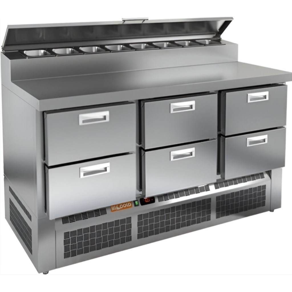 Каталог оборудования Холодильное оборудованиеСтолы охлаждаемыеСтолы холодильные для пиццыСтол холодильный для пиццы HiCold PZE2-222/GN (1/6H) Стол холодильный для пиццы HiCold PZE2-222/GN (1/6H) Код товара: 064-965 Поделиться: WhatsAppTelegram СравнитьДобавить в КПВ избранное 0 278 362 ₽ В корзину 0 шт Под заказСамовывоз сегодня бесплатно Взять в кредит Купить в лизинг Получить консультацию в WhatsApp Описание Характеристики Отзывы 0 Стол холодильный для пиццы HiCold PZE2-222/GN (1/6H) предназначен для использования на предприятиях общественного питания и торговли. Он совмещает охлаждаемый объём и удобную рабочую поверхность, обеспечивая повару быстрый доступ к ингредиентам и комфорт при подготовке блюд — от пиццы и салатов до закусок и десертов. Модель отличается прочной и гигиеничной конструкцией: корпус и столешница изготовлены из нержавеющей стали, что гарантирует износостойкость и лёгкость в уходе даже при интенсивной эксплуатации. Ключевые особенности: Электронная панель управления – точная регулировка температурного режима 6 выдвижных ящиков — позволяют удобно распределить ингредиенты и оптимально организовать пространство для хранения продуктов Салат-бар на 8 гастроемкостей – удобное размещение и быстрый доступ к ингредиентам Автоматические доводчики дверей с фиксатором открытого положения – комфорт при работе Легкозаменяемые магнитные уплотнители – надёжная герметизация и простота обслуживания Открытая агрегатная часть – лёгкий доступ для технического обслуживания Регулируемые по высоте ножки – устойчивость на разных типах покрытия Максимальная глубина гастроемкостей: 100 мм Глубина рабочей поверхности: 486 мм Толщина столешницы: 50 мм HiCold PZE2-222/GN (1/6H) — универсальный стол для пиццы, сочетающий вместительное охлаждение и рабочую поверхность из нержавеющей стали. Подходит для ресторанов, кафе и пиццерий, где важно удобство, гигиена и надёжность оборудования.Изображение товара, представленного на фото, может отличаться от его фактического вида. Показать все Габаритные размеры1485×700×990 ммДиапазон рабочей температурыот +2 до +10 °CРасположение агрегатаНижнее Материал столешницыНержавеющая Тип столаС ящиками Объём375 лТип гастроемкостейGN 1/6 Количество ящиков6 штРазмер полки530×325 ммНапряжение220 ВМощность0,2 кВтТип охлажденияДинамическое Тип оттайкиАвтоматическая СтолешницаС бортом Габариты в упаковке1700×850×1180 ммВес нетто123 кгВес брутто175 кгБрендHicoldВсе нержавеющие холодильные столы для пиццы Оставить отзыв Еще никто не оставил отзыв на этот товар Ранее просмотрено В наличии 196 911 ₽ Стол холодильный для пиццы HiCold PZE1-111/GN стекло Под заказ 22 770 ₽ Стол производственный Abat СПРО-7-1 из нержавеющей стали В наличии 168 021 ₽ Стол холодильный для пиццы HiCold PZE1-11/GN стекло Под заказ 21 341 ₽ Стол производственный Abat СПРП-6-1 из нержавеющей стали Под заказ 58 850 ₽ Тележка для пароконвектомата Abat ТДШ-40-1/1