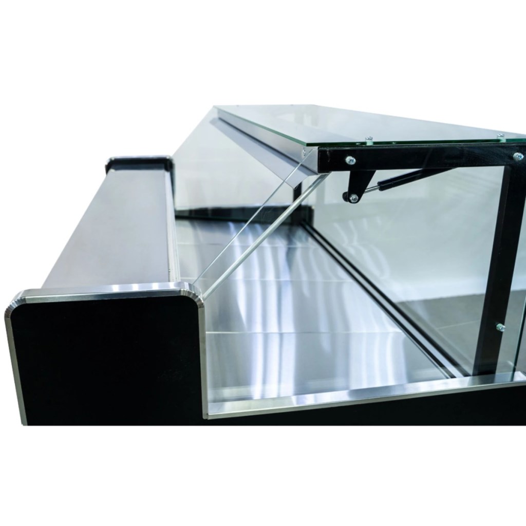 Каталог оборудования Холодильное оборудованиеВитрины холодильныеВитрины холодильные среднетемпературные от 0 до +5 °СВитрина холодильная Ангара 3 КУБ 1,0 статика Витрина холодильная Ангара 3 КУБ 1,0 статика Код товара: 066-482 Поделиться: WhatsAppTelegram СравнитьДобавить в КПВ избранное 0 86 848 ₽ В корзину 0 шт Под заказСамовывоз сегодня бесплатно Взять в кредит Купить в лизинг Получить консультацию в WhatsApp Описание Характеристики Отзывы 0 Витрина холодильная Ангара 3 КУБ 1,0 статика предназначена для демонстрации и кратковременного хранения пищевых продуктов. Витрина поддерживает заданную температуру предварительно охлаждённых продуктов и гармонично вписывается в оформление торгового зала или открытой площадки. Особенности: Статическое охлаждение: естественная циркуляция воздуха без вентиляторов, поддержание температуры и свежести продуктов Встроенный компрессорный холодильный агрегат Embraco Aspera или Secop (Danfoss) Надёжный микродвигатель EBM-PAPST Ударопрочное прямое лобовое стекло и боковые стекла толщиной 6 мм Материалы: поверхность выкладки – нержавеющая сталь, подтоварники – оцинкованная сталь с полимерным покрытием, столешницы – нержавеющая сталь Вместительный подтоварник для хранения продукции Автоматическое оттаивание испарителя с отводом талой воды в ёмкость в агрегатном отсеке Электронное управление температурой через блок Elitech ETC-974 (2 датчика, усиленное реле) Равномерное распределение температуры по объёму камеры без образования льда и инея Светодиодное LED-освещение – яркое, экономичное, с низким тепловыделением; включается кнопкой на панели управления Автомат IEK для надёжного включения/выключения витрины Ровное расположение витрины благодаря регулируемым опорам, правильный сбор конденсата и бесшумная работа Хладагент – экологичный и нетоксичный R-134a, R-404a Испаритель SEST LUVE от итальянского производителя Комплектация: с подтоварником и электронным блоком управления Температура окружающей среды: +12…+35 °C Ангара 3 КУБ 1,0 – надёжная и компактная витрина для демонстрации и хранения предварительно охлаждённых продуктов. Обеспечивает равномерное охлаждение, яркое LED-освещение и автоматическое оттаивание, что делает её отличным решением для магазинов, гастрономий и открытых торговых площадок.Изображение товара, представленного на фото, может отличаться от его фактического вида. Показать все Габаритные размеры1020×1150×1300 ммДиапазон рабочей температурыот 0 до +5 °CПлощадь выкладки0,77 м²Длина1020 ммГлубина1150 ммВысота1300 ммНоминальная мощность162 ВтРазмер выкладки820 ммПолезный объем180 лХолодообеспечениеВстроенное Тип охлажденияСтатическое Тип оттайкиАвтоматическая Температура эксплуатацииот +12 до +35 °CПодсветкаЕсть ХладагентR134a, R404a Напряжение220 ВРасход электроэнергии в сутки3,9 кВт/сутГабариты в упаковке1200×1500×1200 ммОбъём (брутто)2,16 м³Вес нетто190 кгВес брутто270 кгБрендАнгараВсе витрины холодильные среднетемпературные от 0 до +5 °С 1,0 м Оставить отзыв Еще никто не оставил отзыв на этот товар Ранее просмотрено Под заказ 83 544 ₽ Витрина холодильная Ангара 2 КУБ 1,0 статика