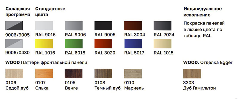 Корпус витрины доступен в различных цветах по схеме производителя, что позволяет подобрать оттенок под любой интерьер.