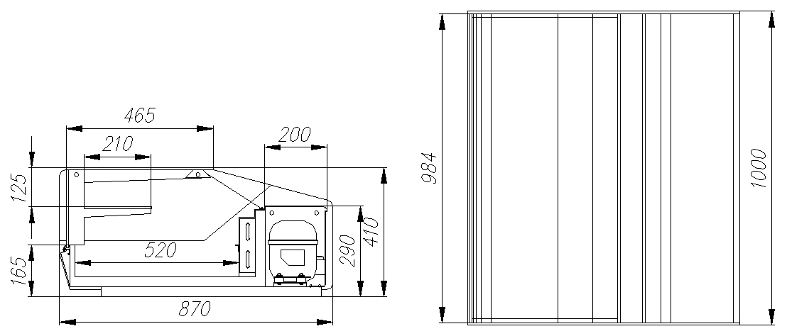 • Одна неохлаждаемая полка — позволяет размещать в витрине продукты с разными требованиями к температурному режиму.
