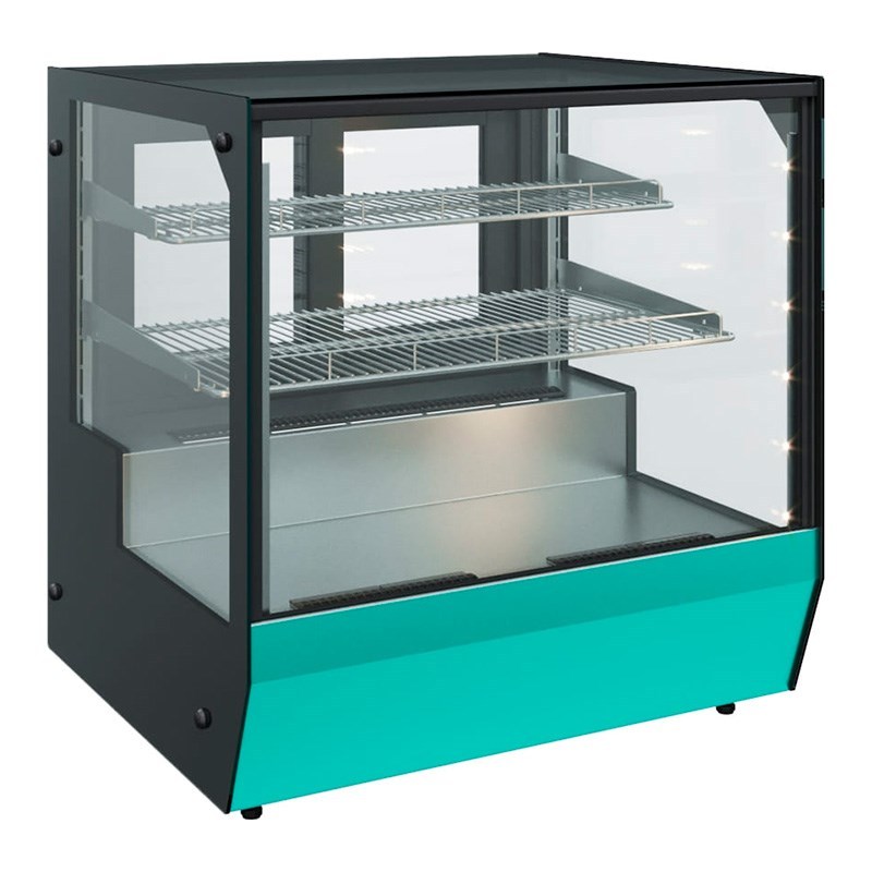 Передняя панель может быть окрашена в один из фирменных цветов производителя, что позволяет адаптировать витрину под интерьер помещения.