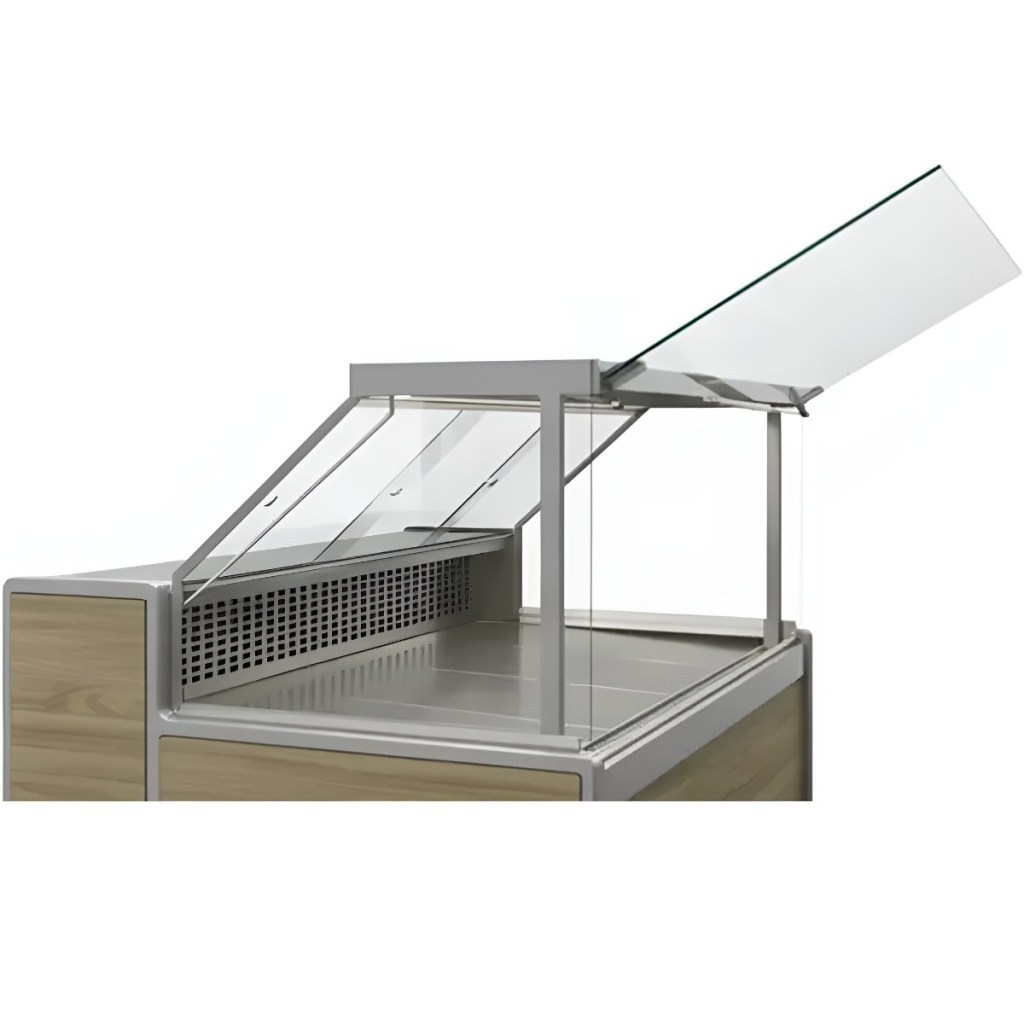 • Подъёмное фронтальное стекло — облегчает доступ к продукции и обслуживание витрины